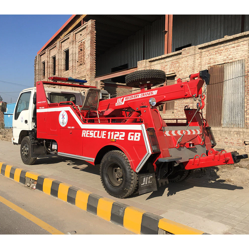 JIC Recovery Vehicle with Rotatable Boom Assembly facilitates recovery operation by lifting and rotating objects. Ideally Designed for rescue recovery operations and wrecker towing at challenging site.